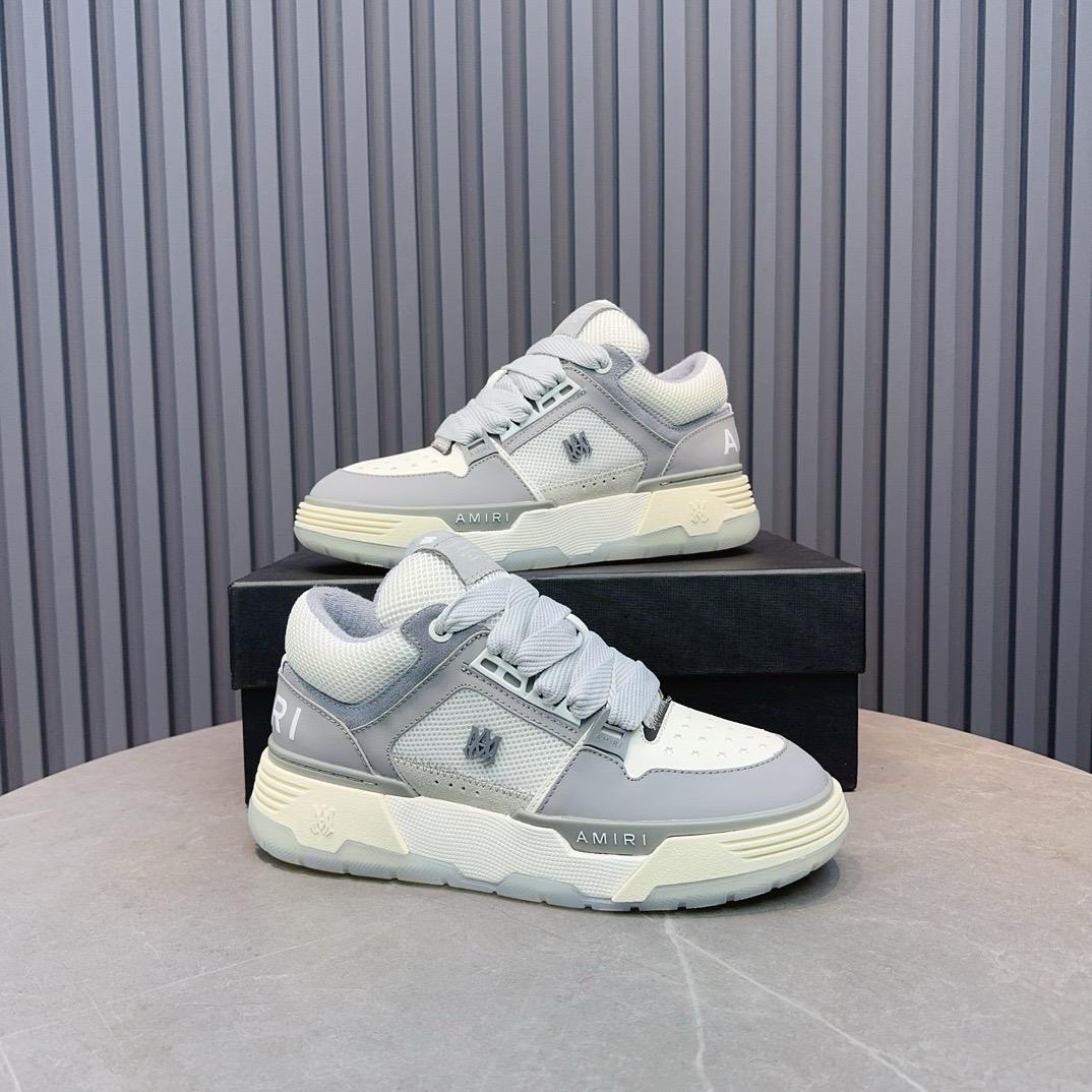 נעלי ספורט אלגנט לבנות-אפורות יוקרתיות מבית אמירי, המשלבות עיצוב קלאסי עם טאץ' מודרני ויוקרתי. הנעליים עשויות עור איכותי עם פרטים מוקפדים, כולל לוגו "AMIRI" מובלט בצידי הנעל. גווני הלבן והאפור יוצרים מראה אלגנטי ומרשים, המתאים לשילוב עם מגוון רחב של סגנונות לבוש