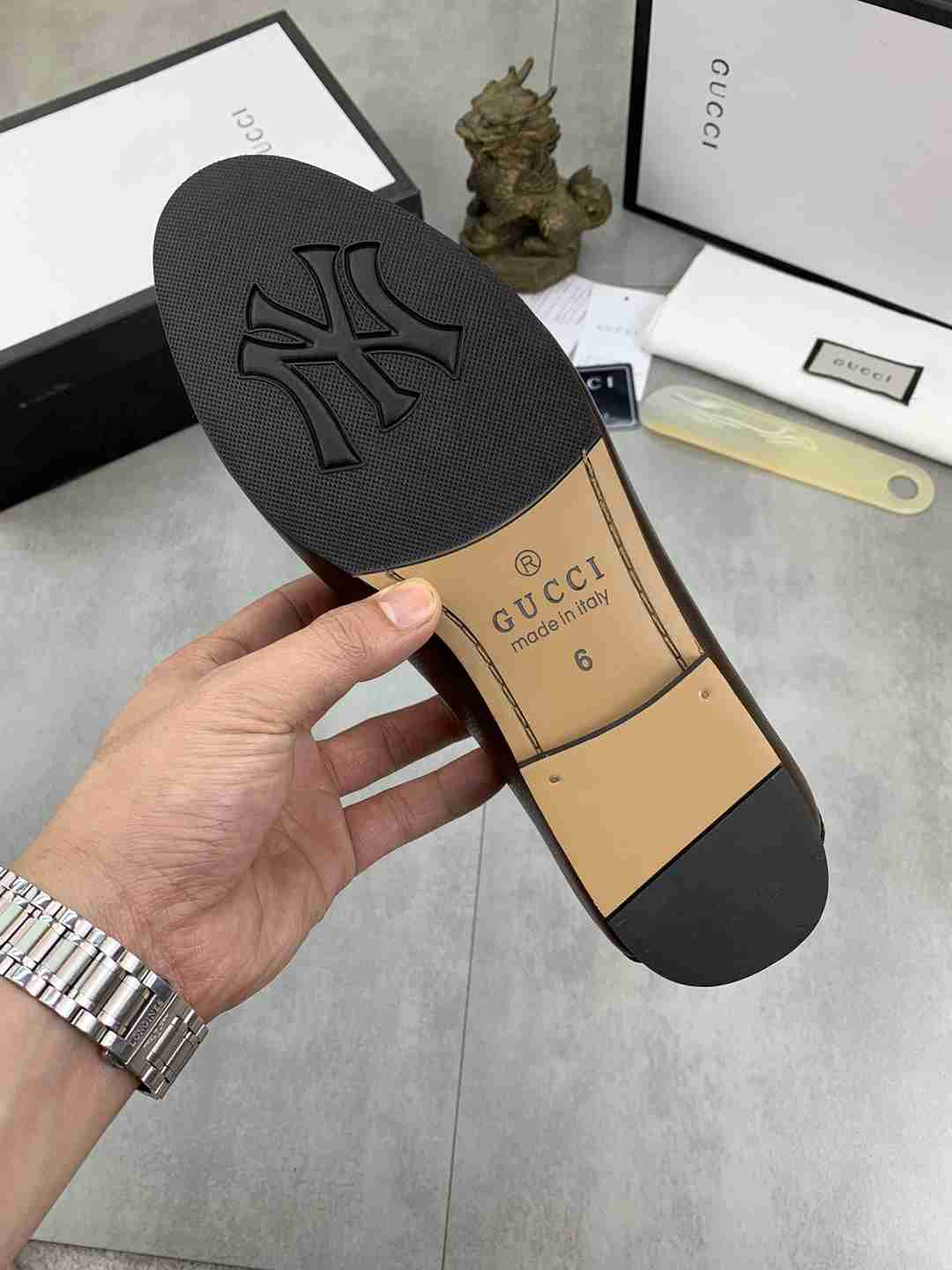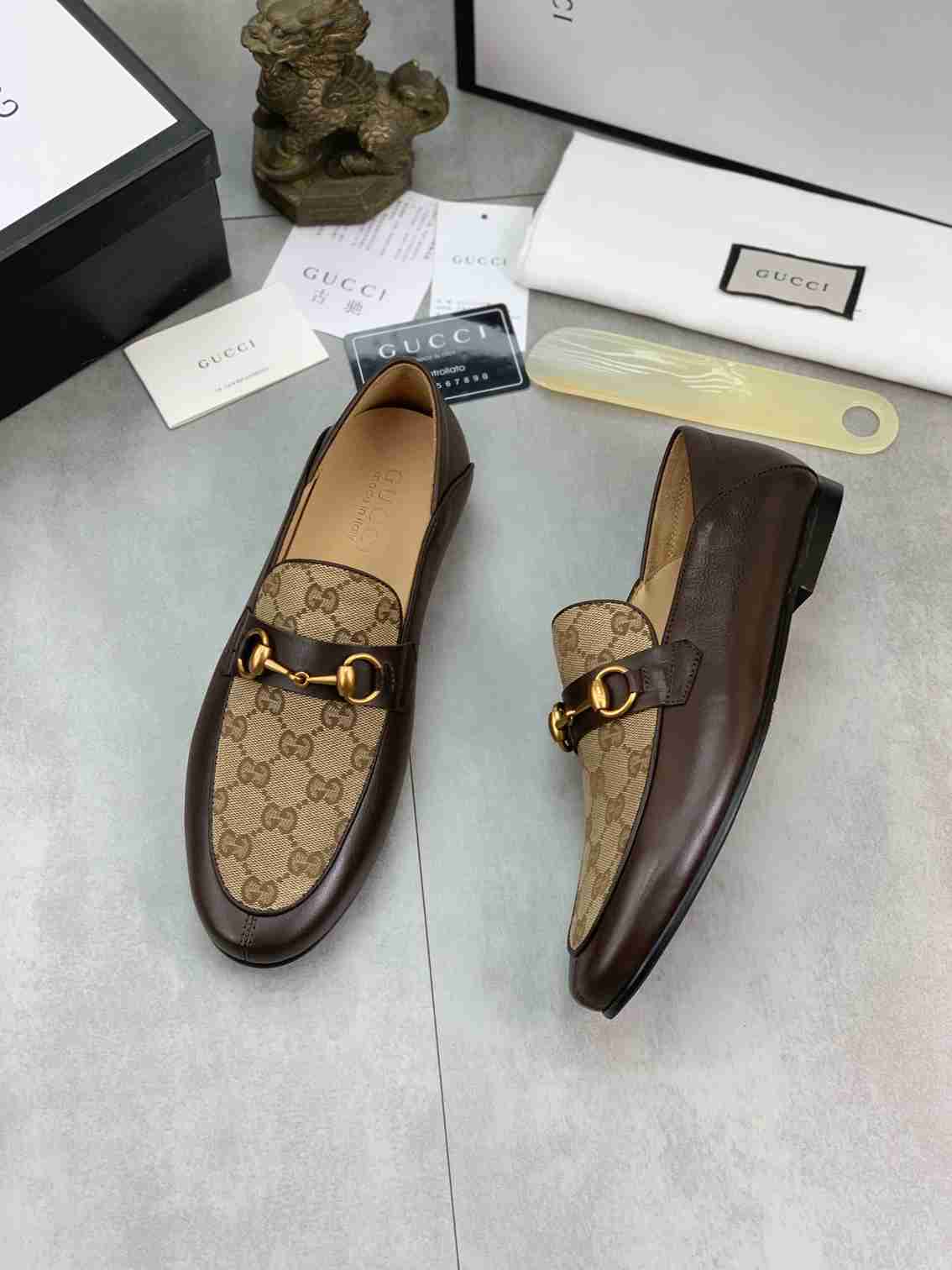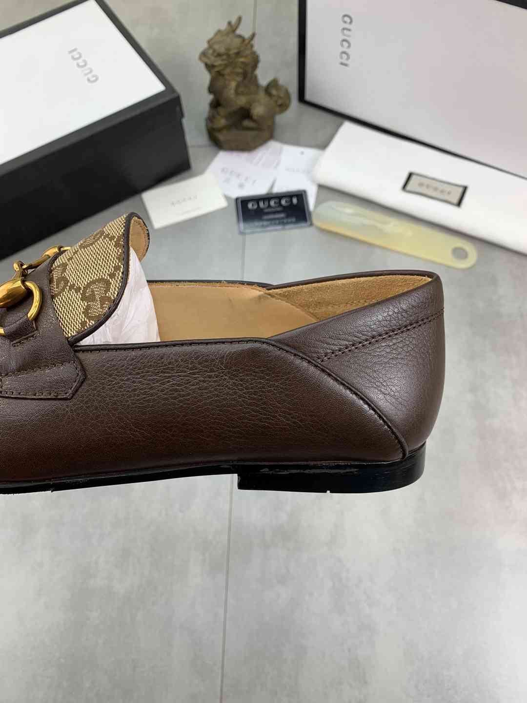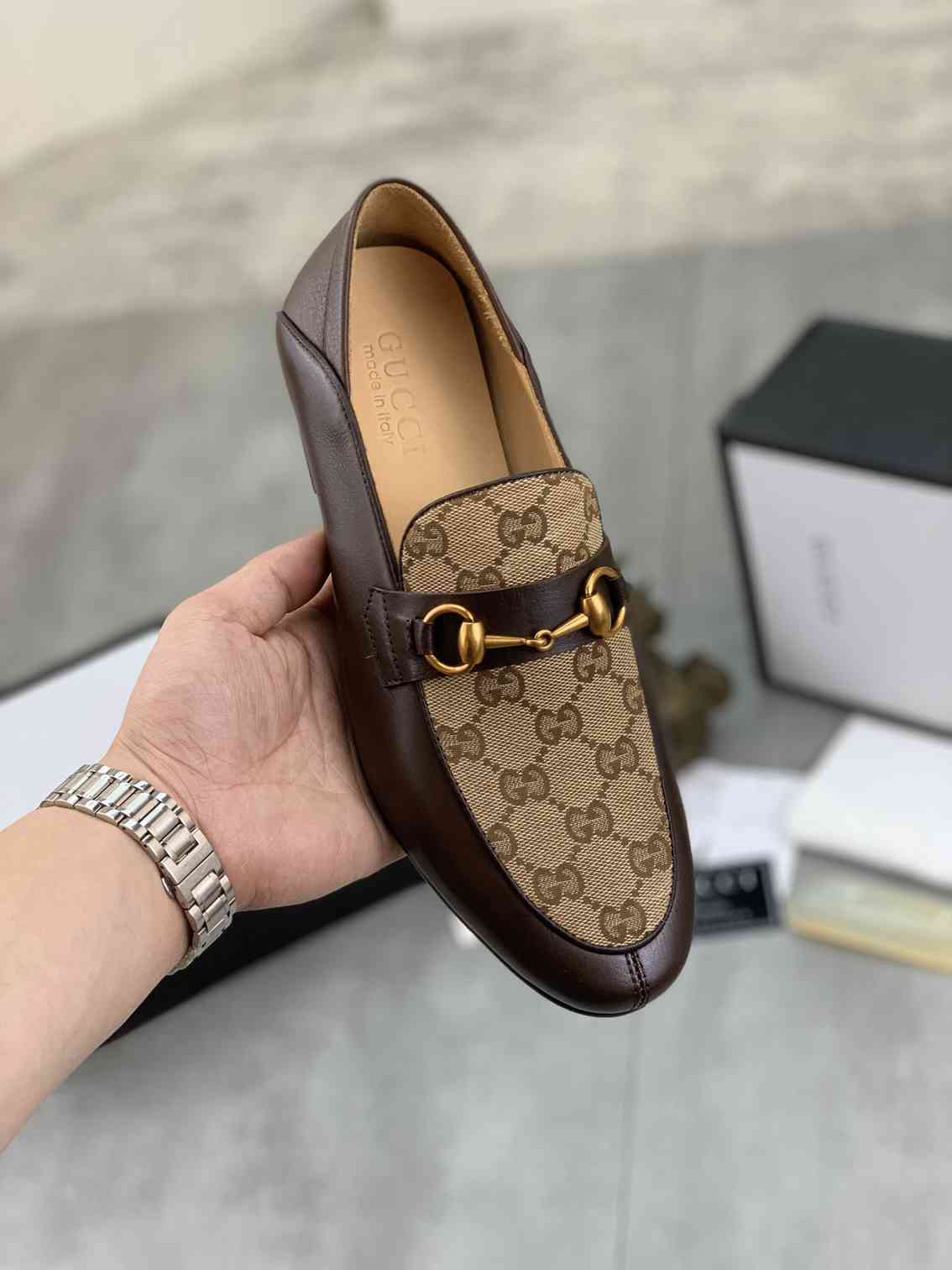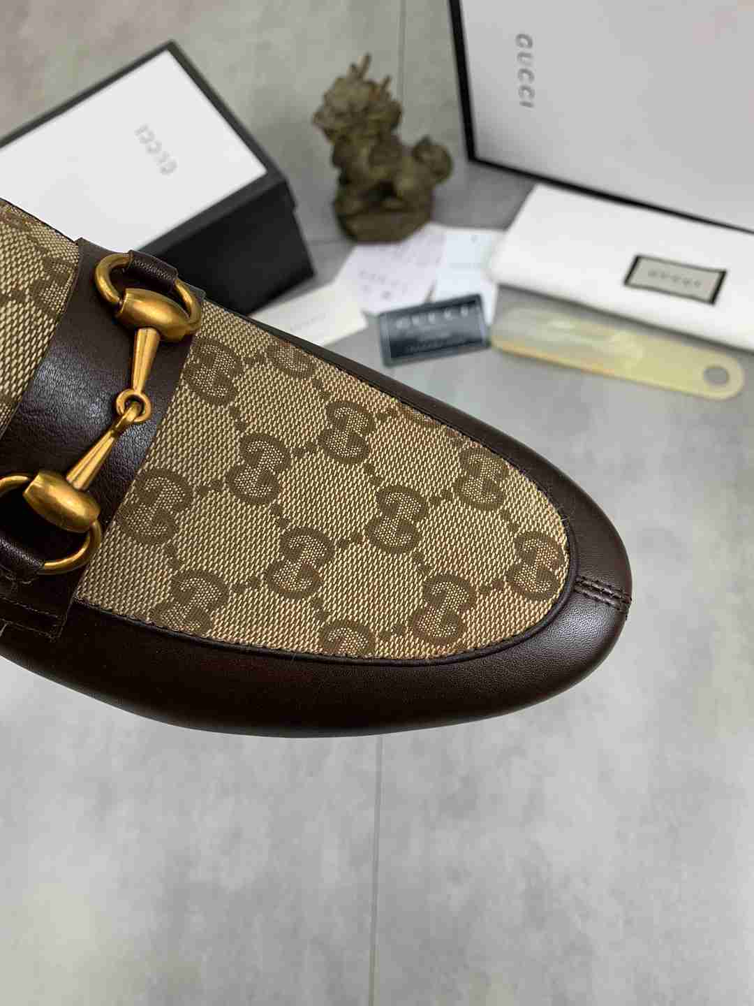 עיצוב קלאסי ואלגנטי: שילוב של סגנון מוקסין על-זמני עם אבזם גוצ'י בולט יוצר מראה מתוחכם ומרשים