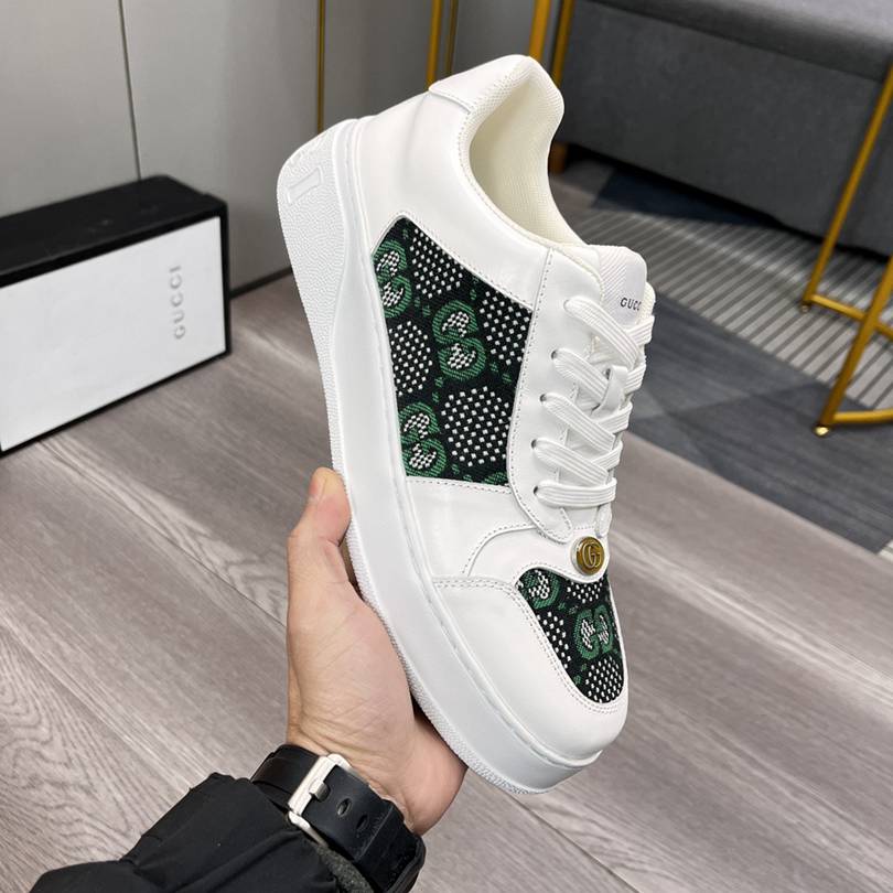 יוקרה קלאסית ונוחות מודרנית: נעלי גוצ'י סניקרס בלבן עם הדפס אייקוני - שילוב מנצח של סגנון ואיכות