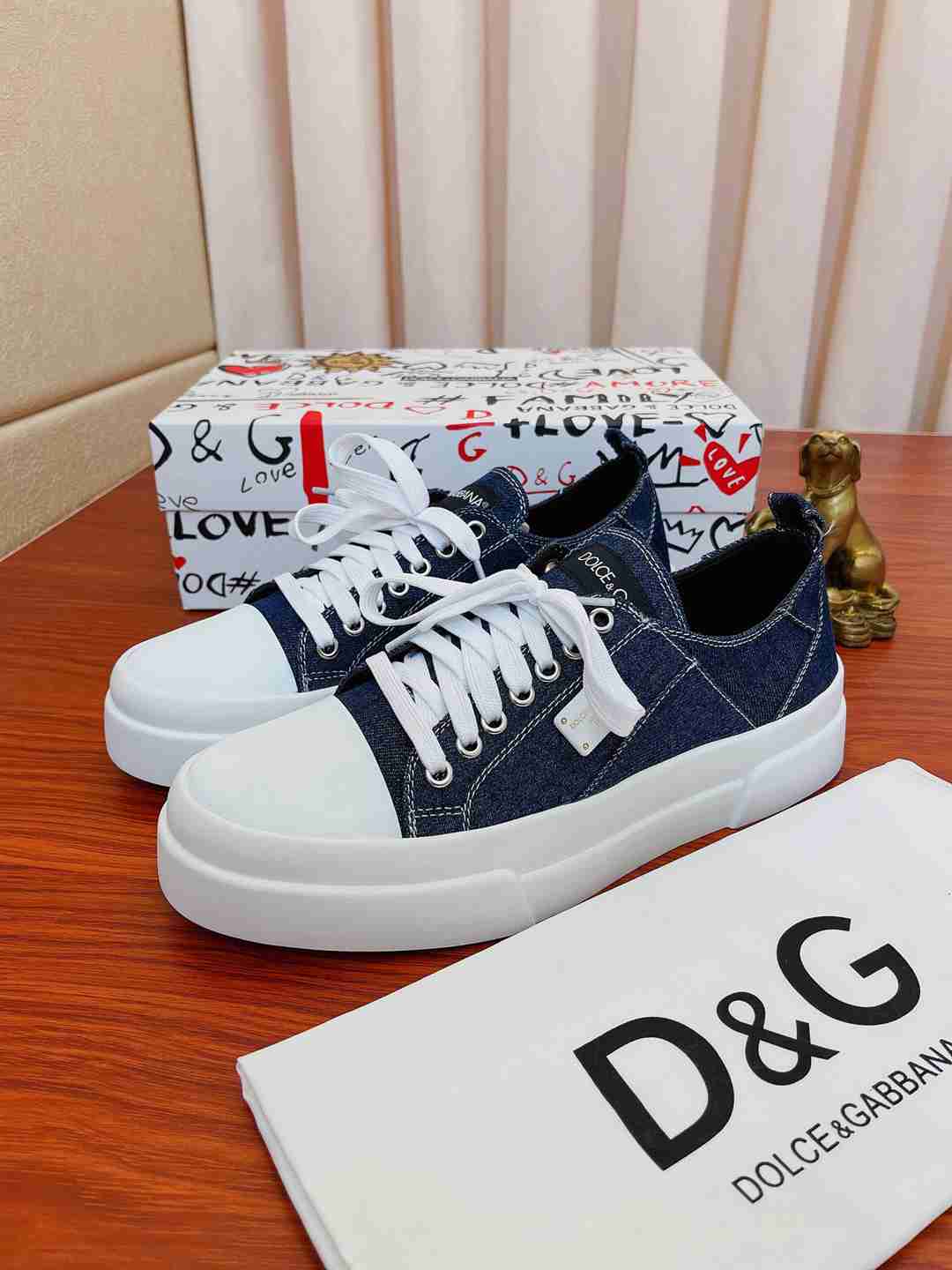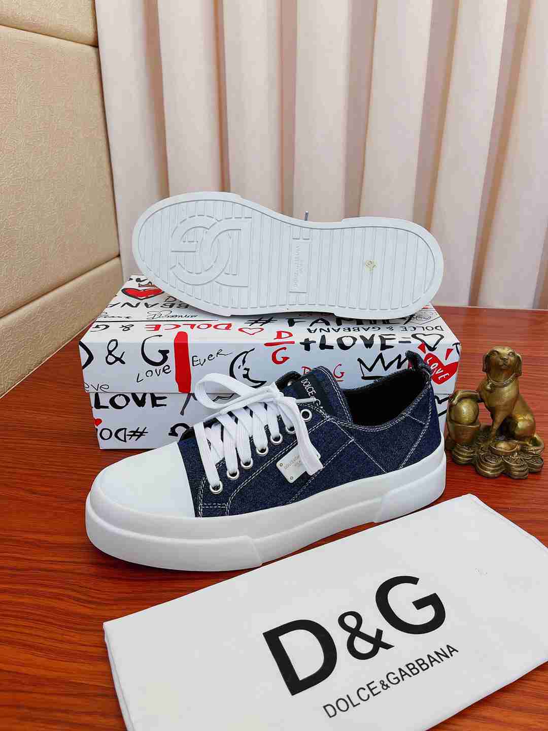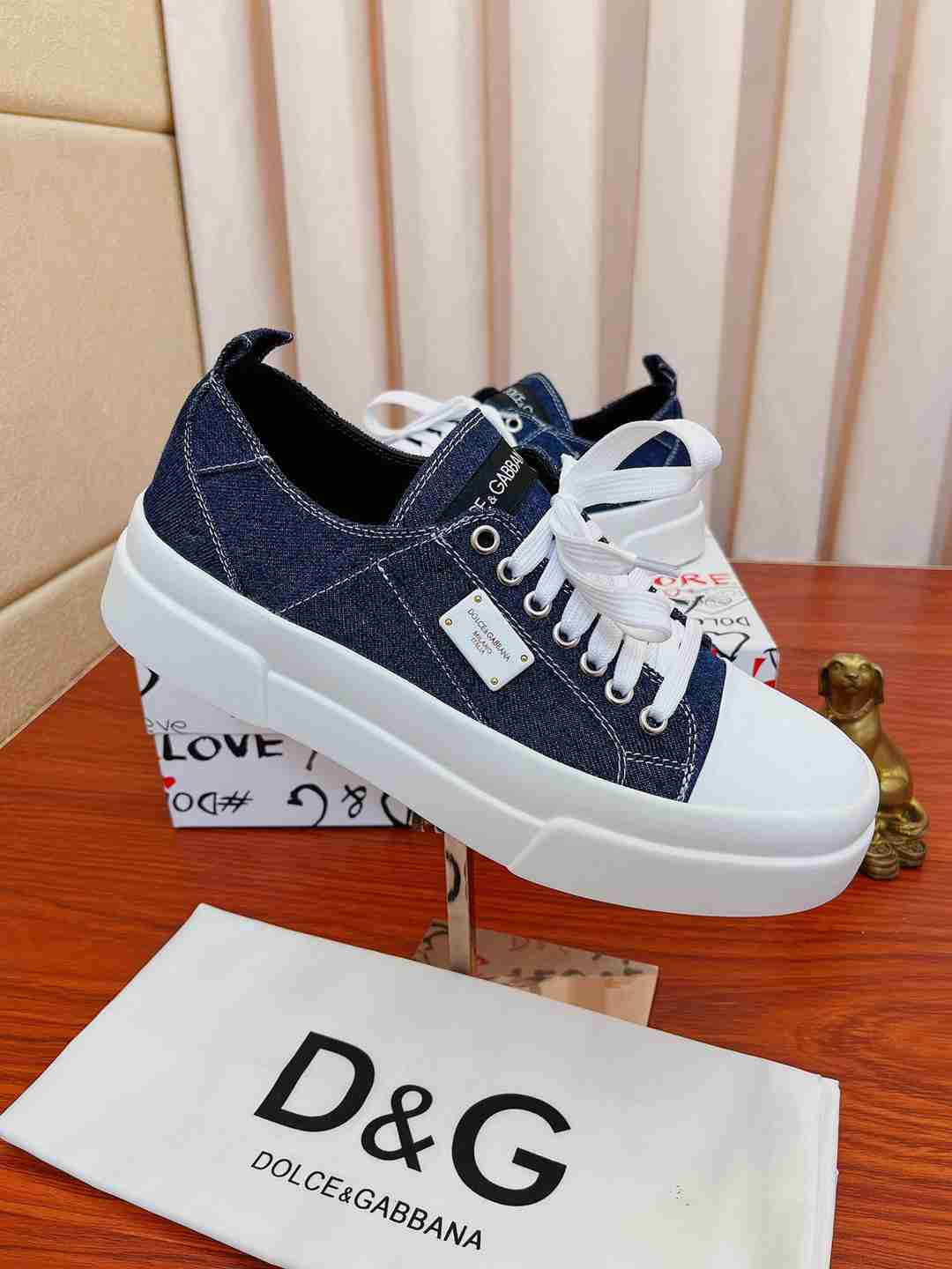הצהרה של סטייל ייחודי ויוקרתי: ענידת סניקרס דולצ'ה גבאנה בסגנון ג'ינס משדרת טעם אופנתי והערכה למותגי יוקרה עם טוויסט טרנדי