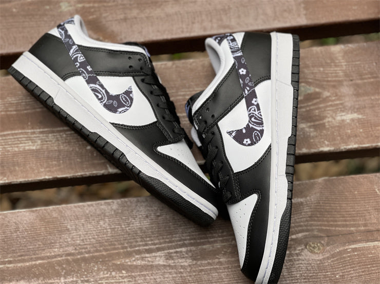 נעל נייק דאנק בשילוב הקלאסי של שחור ולבן, עם טאץ' ייחודי בדמות סמל הבנדנה האופנתי, היא פריט חובה לכל מי שמחפש לשלב סטייל אורבני עם אמירה אישית