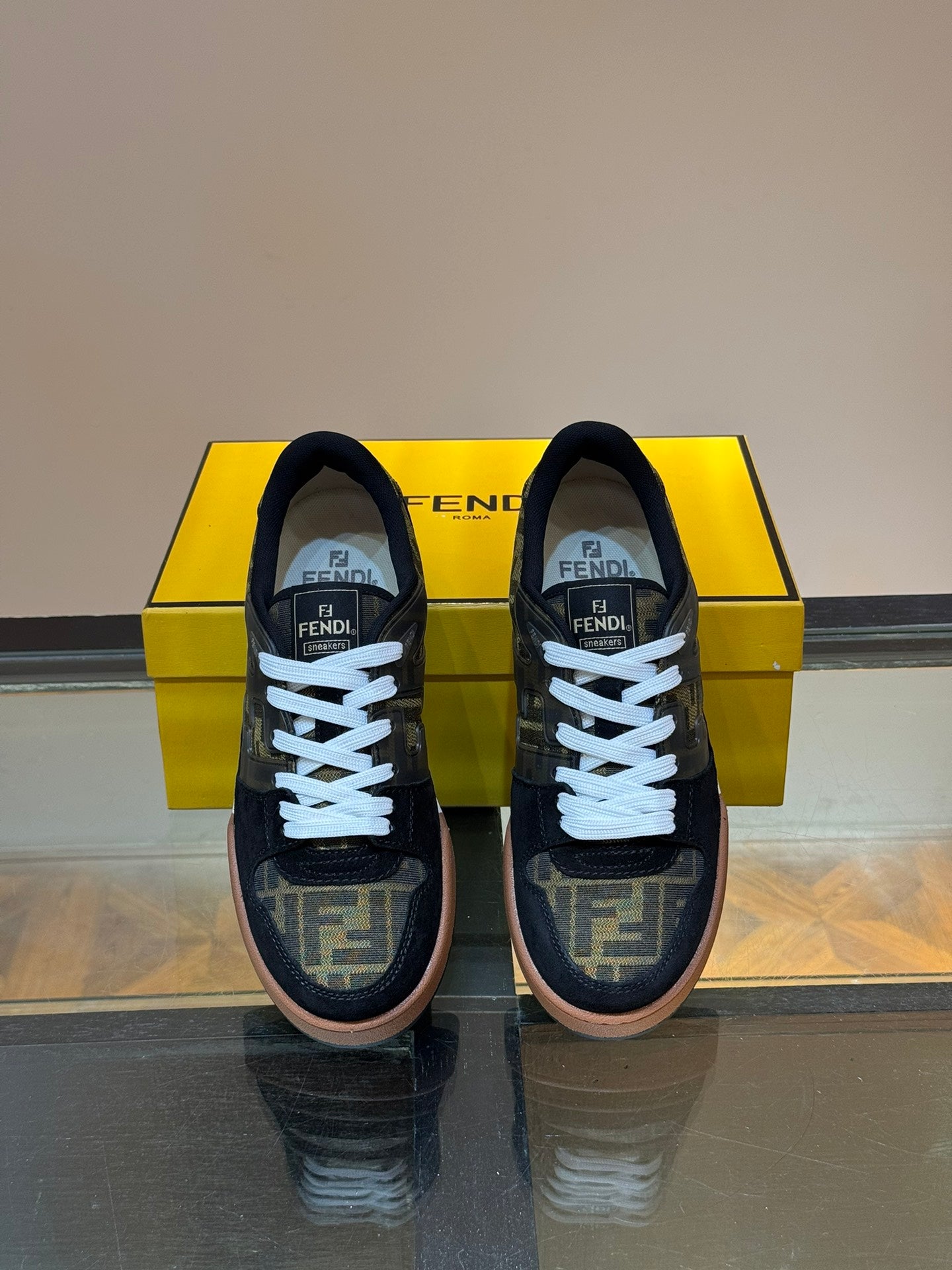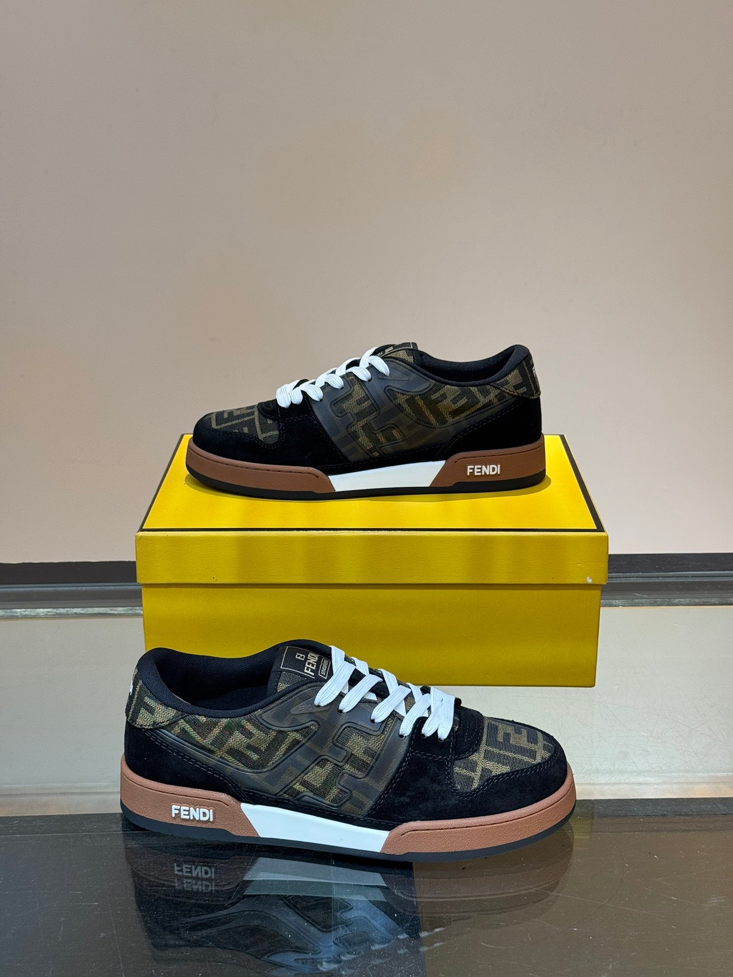 סניקרס פנדי אלו מציגות שילוב מעניין של חומרים וטקסטורות, עם דגש על צבע חום עשיר ונעים לעין. השילוב של חצי עור איכותי וחצי בד או חומר אחר יוצר מראה ייחודי ומעניין. העור החום מעניק תחושה של יוקרה ואיכות, בעוד החלק השני של הנעל יכול להוסיף טאץ' ספורטיבי או קז'ואלי יותר. הלוגו המוכר של פנדי משולב בעיצוב בדרכים שונות, ומעיד על השייכות למותג היוקרתי. הסניקרס האלה הן בחירה מצוינת למי שמחפש נעליים עם אופי וסטייל מובחן, שמשלבות אלגנטיות ונוחות
