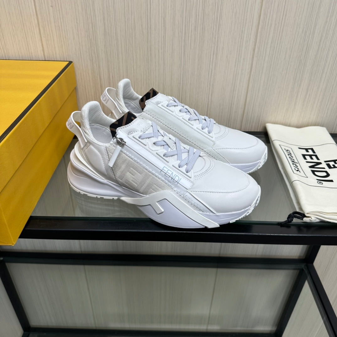 סניקרס פנדי אלו מציעות מראה רענן ואלגנטי עם טאץ' ספורטיבי יוקרתי. הצבע הלבן הדומיננטי מעניק תחושה של קלילות ויוקרה נקייה, ומשתלב בקלות עם מגוון רחב של סגנונות לבוש. העיצוב משלב אלמנטים ספורטיביים לנוחות מקסימלית, לצד נגיעות יוקרתיות כמו לוגו פנדי בולט או גימורים איכותיים